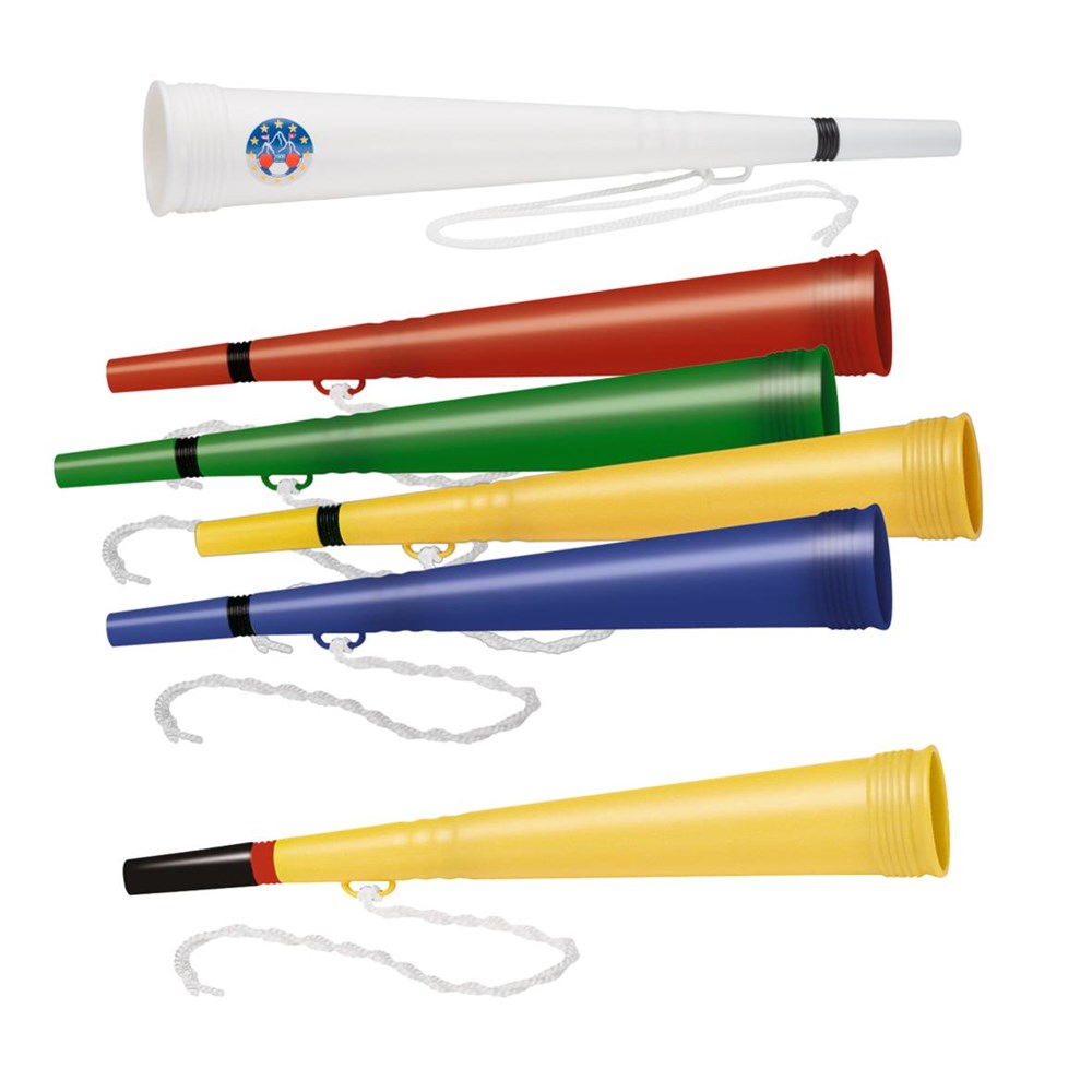 Große Tröte für einen starken Ton, mit Umhängekordel. Kombinieren Sie Mundstück, Klangkörper und Zwischenstück in verschiedensten Standardfarben.