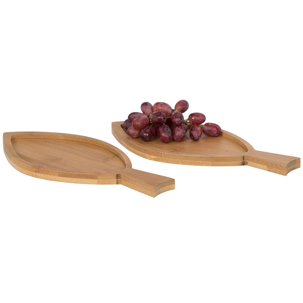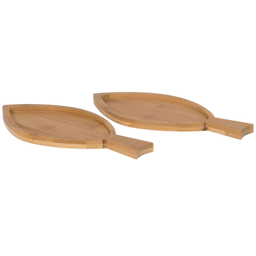 Diese zwei fischförmigen Bambus Amuse-Bouche Teller eignen sich perfekt zum Servieren von Fingerfood. Präsentiert in einer Avenue Geschenkschachtel.