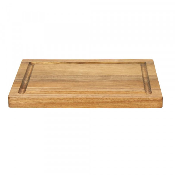 Stabiles Schneidbrett aus mit Sojabohnen-Öl behandeltem Akazienholz. Inkl.gefräster Saftrille und 2 seitlichen Griffkerben. Dieser Artikel wird aus einem Naturprodukt hergestellt und kann daher in Farbe und Aussehen variieren.