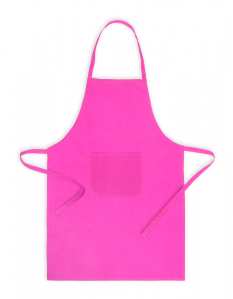 Farbige Schürze mit Brusttasche. Material: 35 % Baumwolle, 65 % Ployester.