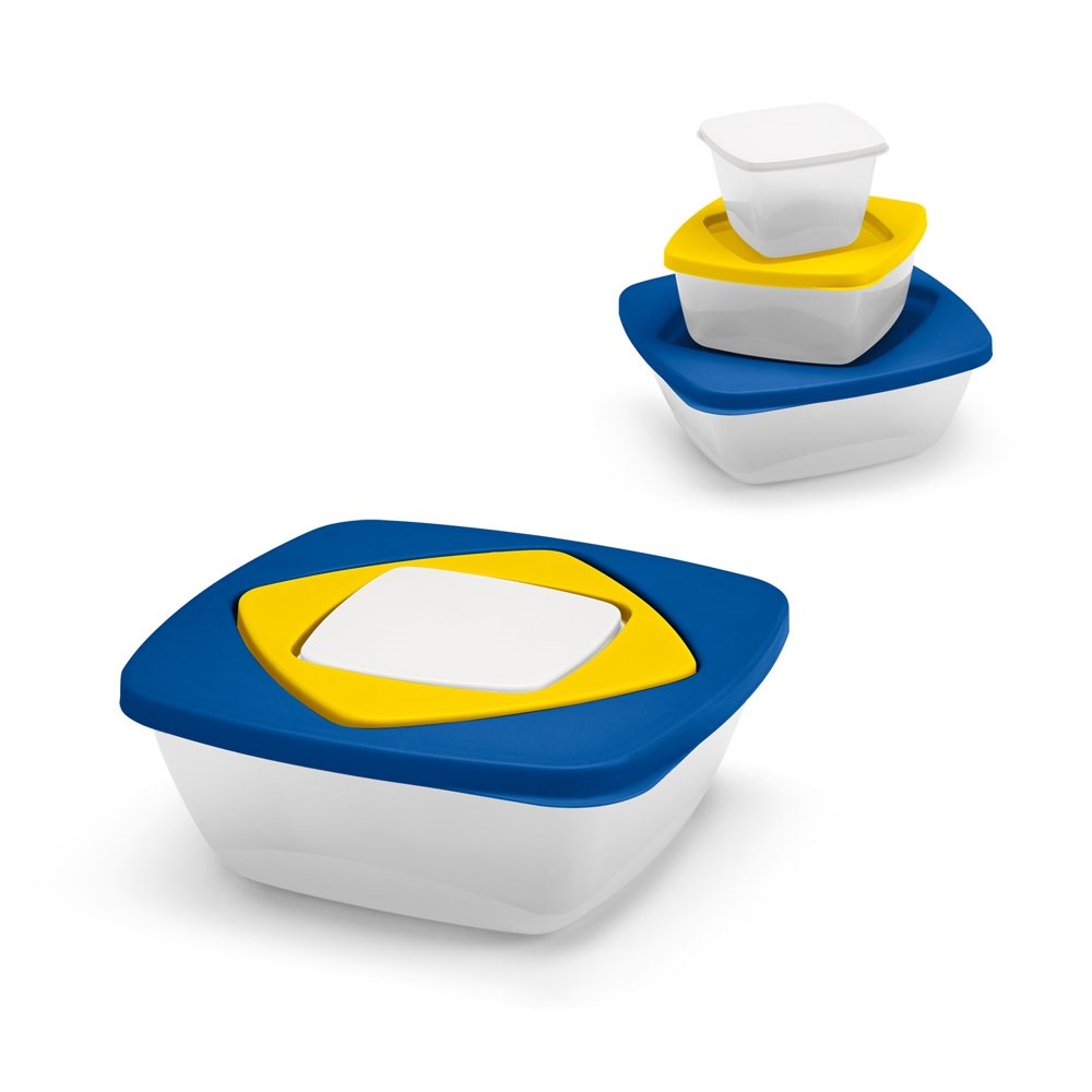 Frischhalte-Set mit drei Vorratsdosen aus PP (1160 ml, 560 ml und 230 ml). 170 x 170 x 67 mm