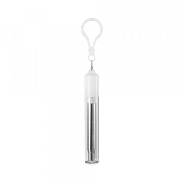 Strohhalm-Set bestehend aus einem teleskopischem Strohhalm aus Edelstahl und einer Reinigungsbürste. Geliefert in einem Etui mit Karabiner. Strohhalm: ø9 x 218 mm | Etui: ø10 x 105 mm