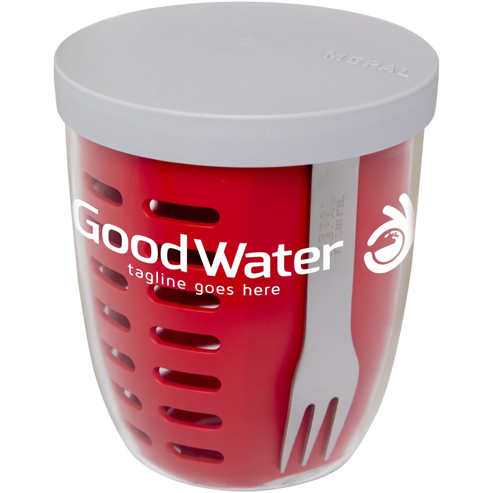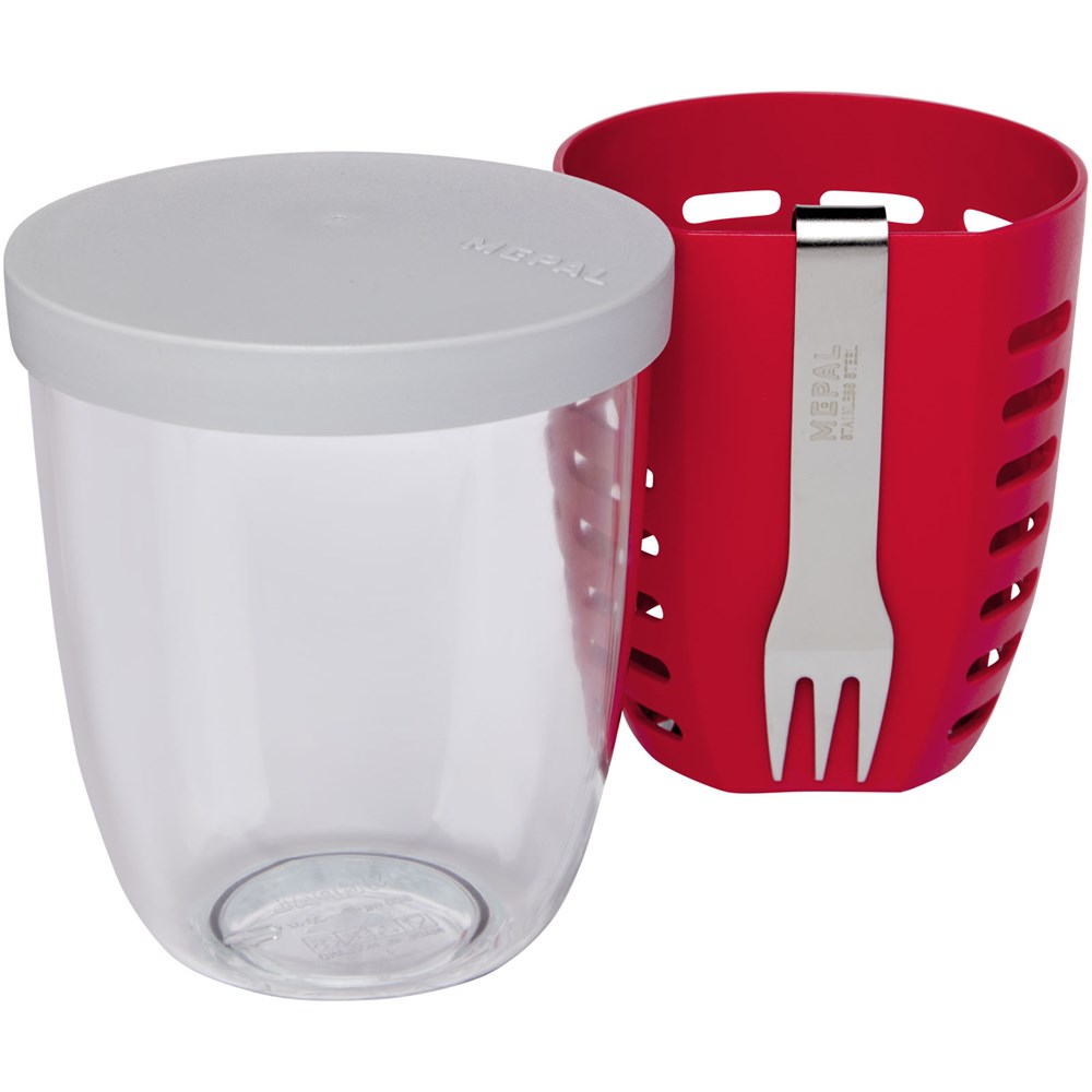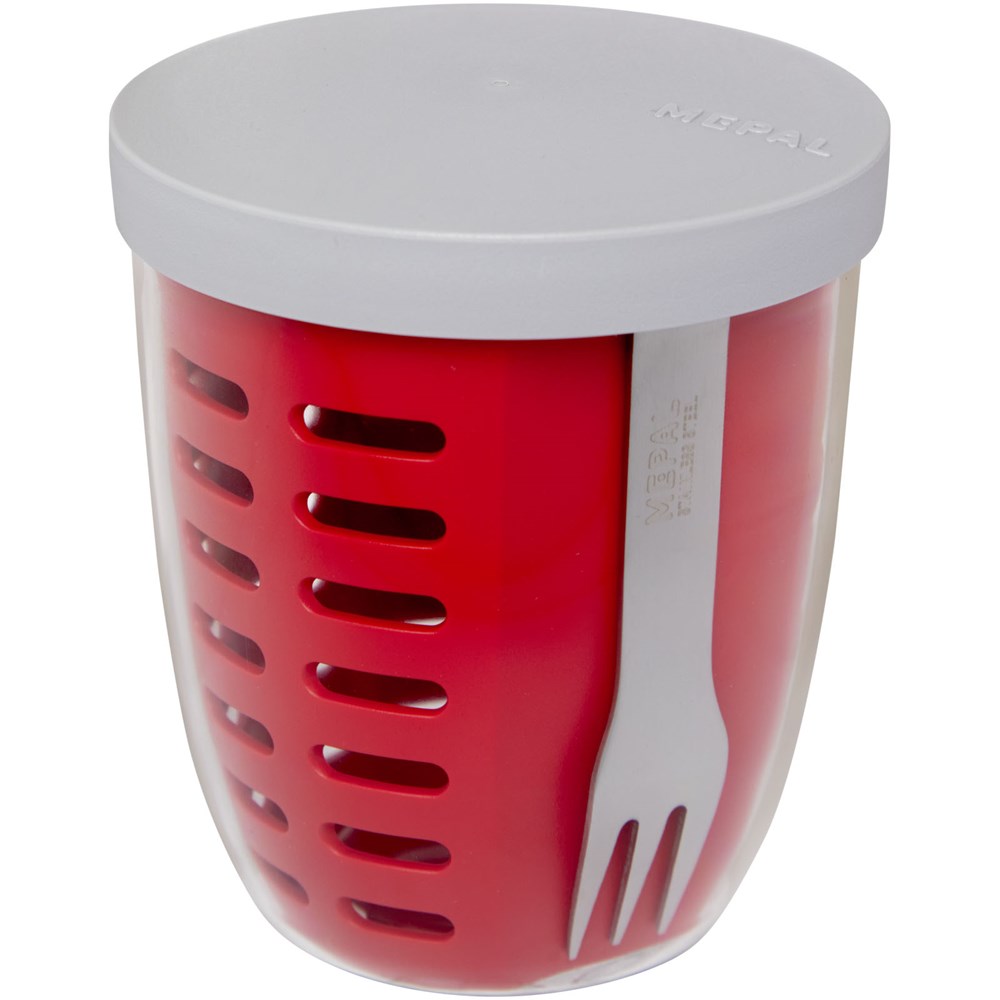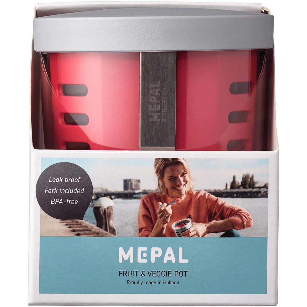 Obst- oder Gemüsebehälter mit Edelstahl-Gabel und Abtropfsieb, das das Ausspülen des Inhalts erleichtert. Zwischen Behälter und Sieb befindet sich ein kleiner Zwischenraum, damit die Speisen direkt abtropfen können. Das Sieb kann herausgenommen werden und der Behälter kann als Salatbehälter verwendet werden. Der Deckel ist kompatibel mit anderen Mepal Pots. Aus strapazierfähigem Material und spülmaschinenfest. Das Fassungsvermögen beträgt 600 ml. Auslaufsicher. BPA frei.