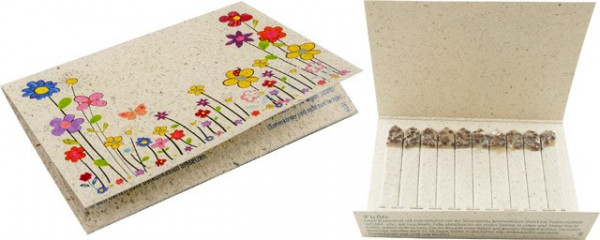 Ein naturiges und nachhaltiges Giveaway aus Graspapier mit Sommerblumen-Samen für eine bienenfreundliche Sommerwiese. Das Booklet bietet viel Platz für Ihren Werbeeindruck im Standardmotiv oder auch für Ihre eigene Gestaltung ab 250 Stück.