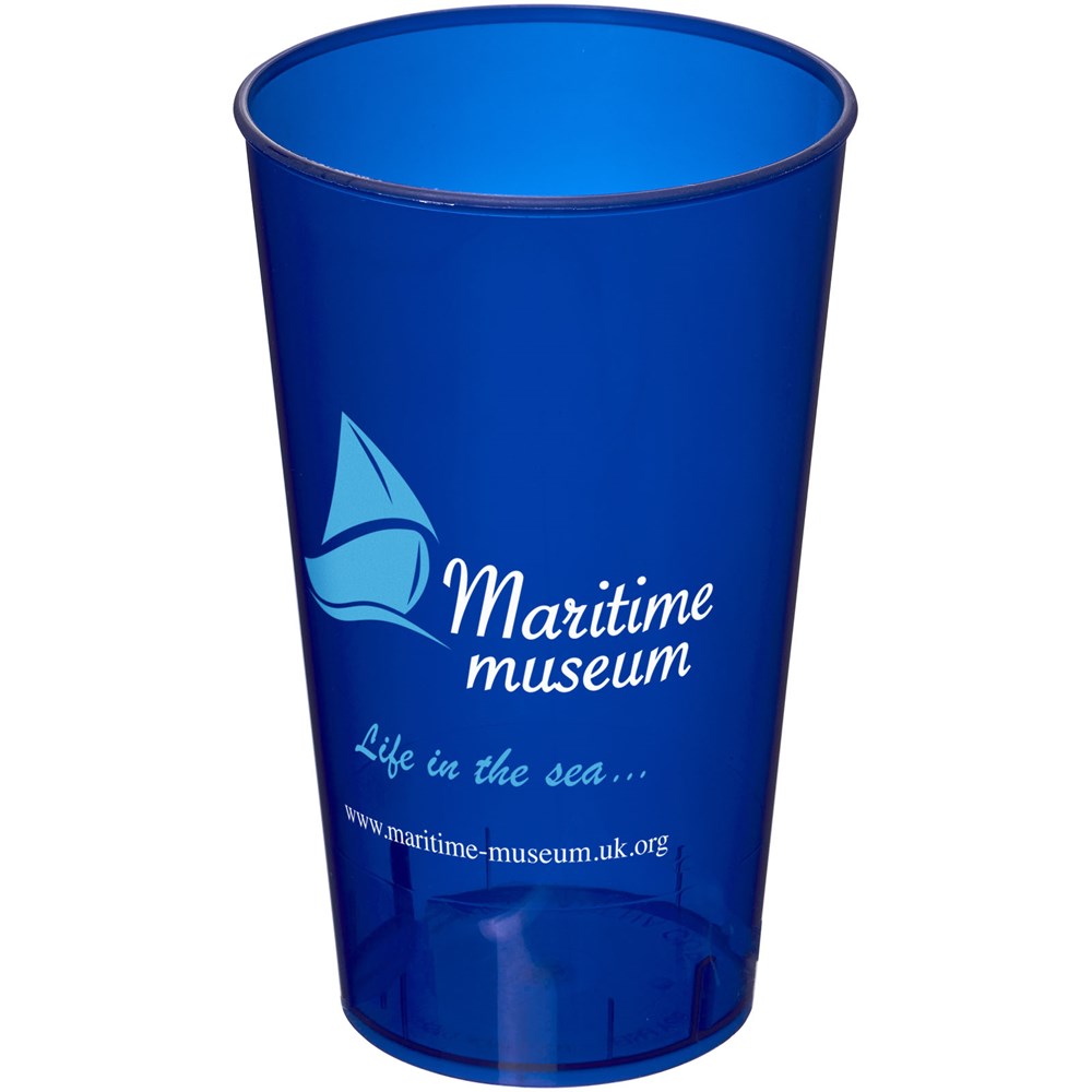 Einwandiger Kunststoffbecher. Eine preiswerte Wahl für wiederverwendbare Getränkebecher. Das Fassungsvermögen beträgt 375 ml. Hergestellt in Großbritannien.