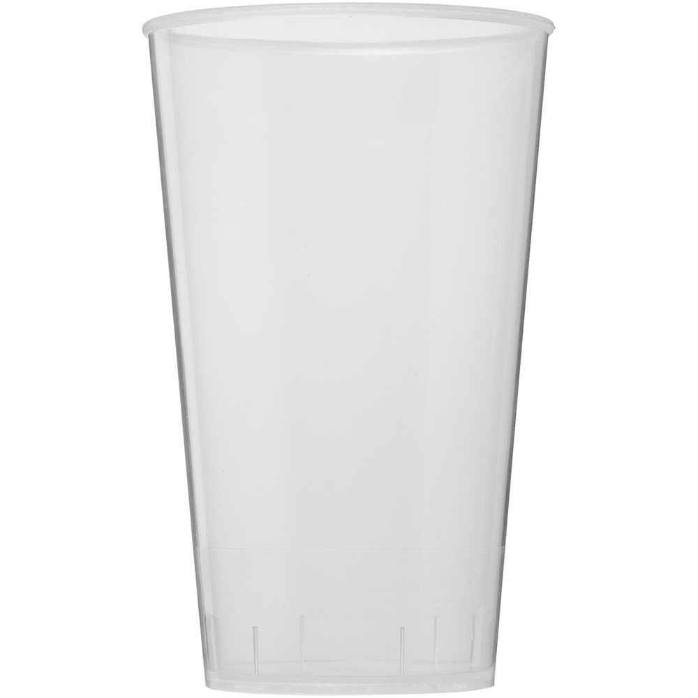 Einwandiger Kunststoffbecher. Eine preiswerte Wahl für wiederverwendbare Getränkebecher. Das Fassungsvermögen beträgt 375 ml. Hergestellt in Großbritannien.
