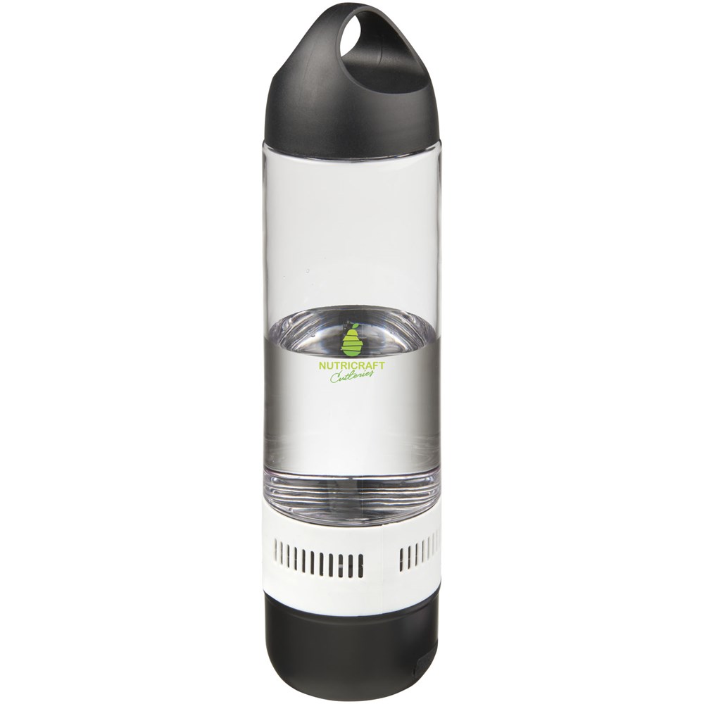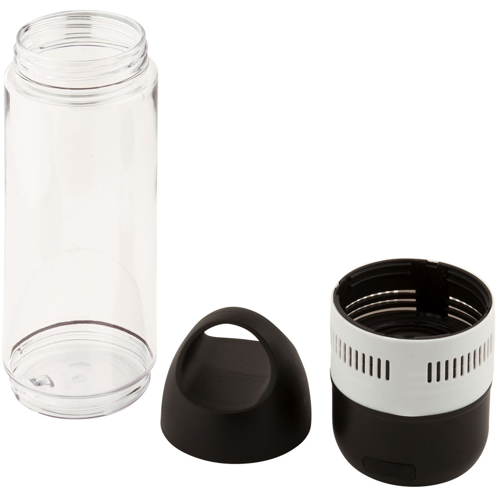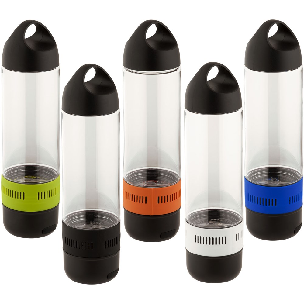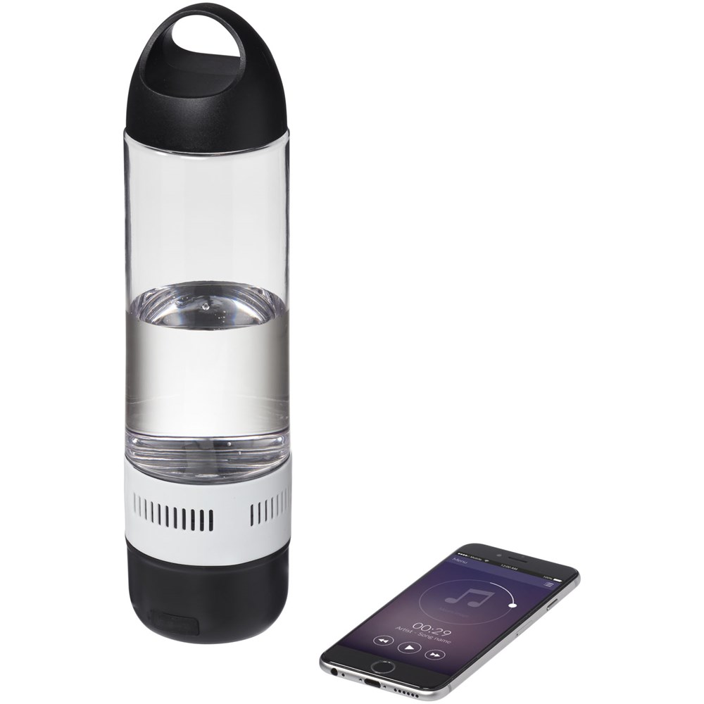 Einwandige Flasche mit aufschraubbarem Deckel. Enthält einen abnehmbaren Bluetooth® Lautsprecher. Inklusive Micro-USB Ladekabel. Reichweite ca. 10 Meter. Volumen 500 ml. Verpackt in einer Geschenkbox.