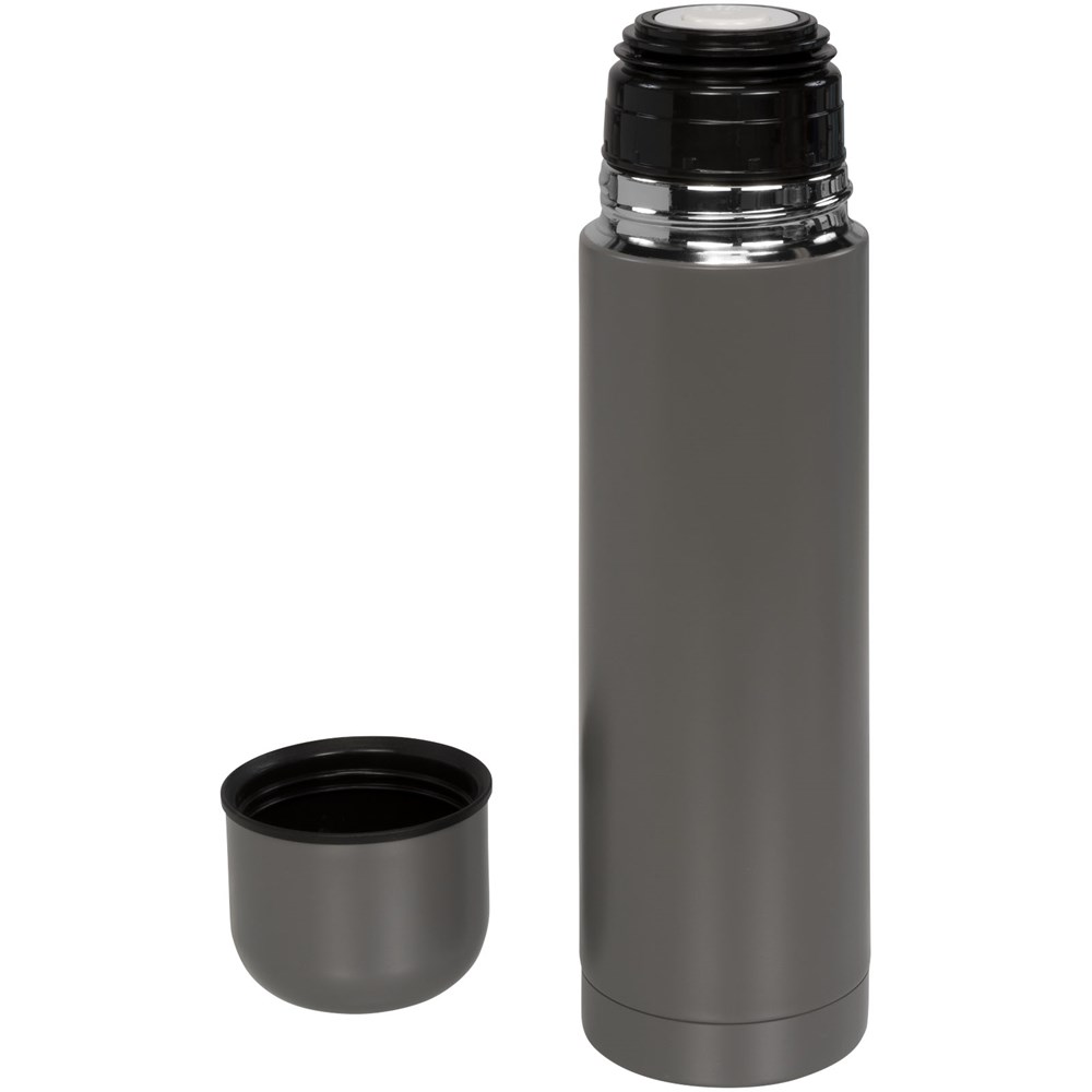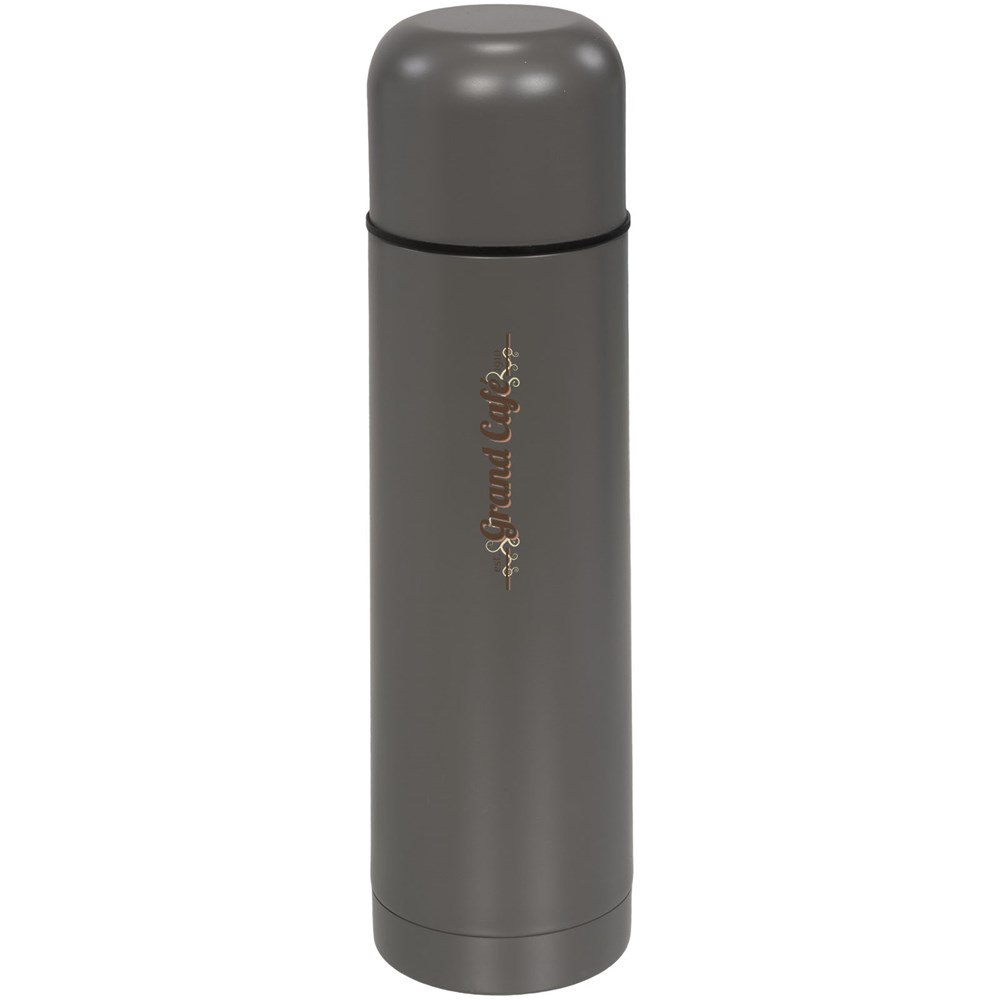 Isolierflasche aus doppelwandigem Edelstahl mit integriertem Becher in der Kappe. Verfügt über einen trendigen matten Look. Fassungsvermögen 500 ml.