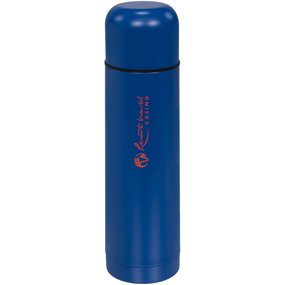 Isolierflasche aus doppelwandigem Edelstahl mit integriertem Becher in der Kappe. Verfügt über einen trendigen matten Look. Fassungsvermögen 500 ml.