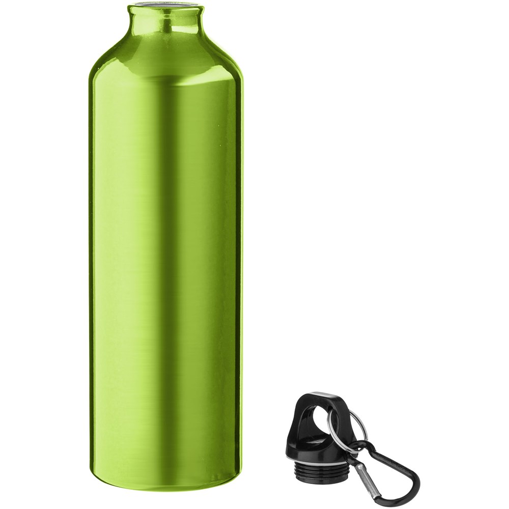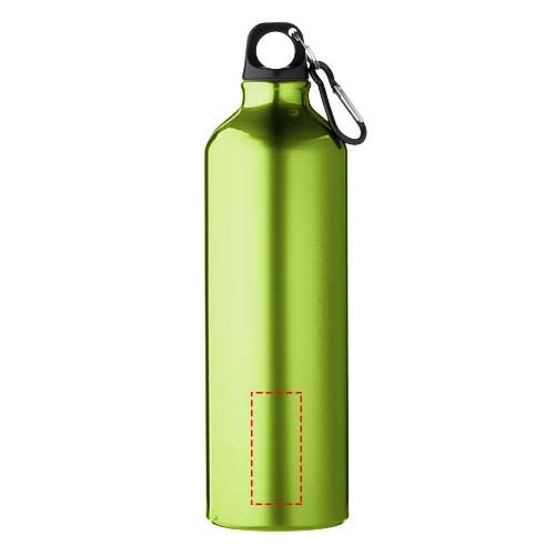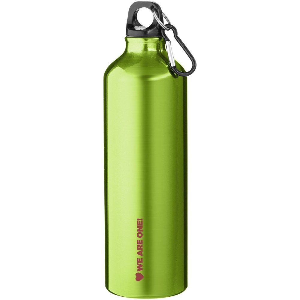 Einwandige Flasche mit Schraubverschluss. Karabiner ist nicht für das Klettern geeignet. Volumen 770 ml.