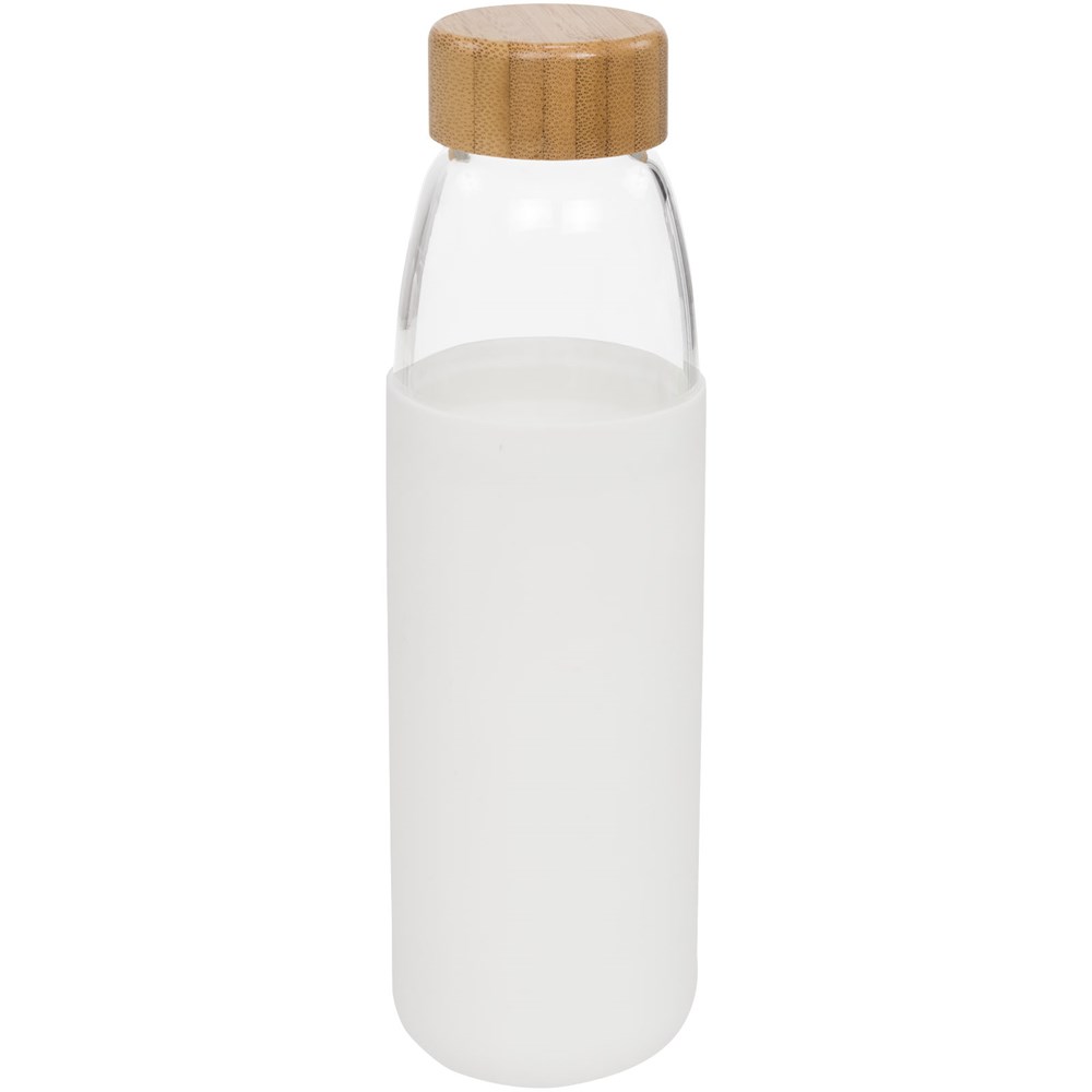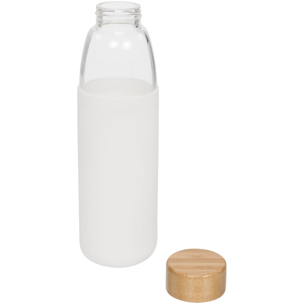 Einwandige BPA-frei Borosilikat-Glasflasche in einer weichen Silikonhülle. Mit Bambus-Schraubverschluss und rutschfestem Boden. Nicht für das Einfrieren geeignet, nicht mikrowellengeeignet. Fassungsvermögen 540ml. In einem Avenue-Geschenkkarton präsentiert.