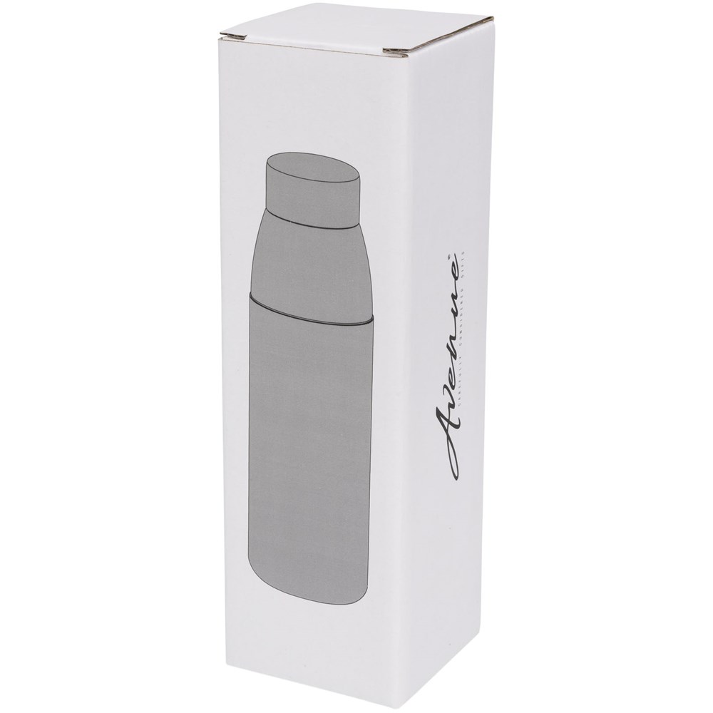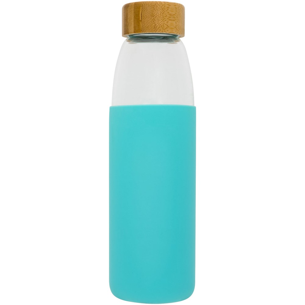 Einwandige BPA-frei Borosilikat-Glasflasche in einer weichen Silikonhülle. Mit Bambus-Schraubverschluss und rutschfestem Boden. Nicht für das Einfrieren geeignet, nicht mikrowellengeeignet. Fassungsvermögen 540ml. In einem Avenue-Geschenkkarton präsentiert.