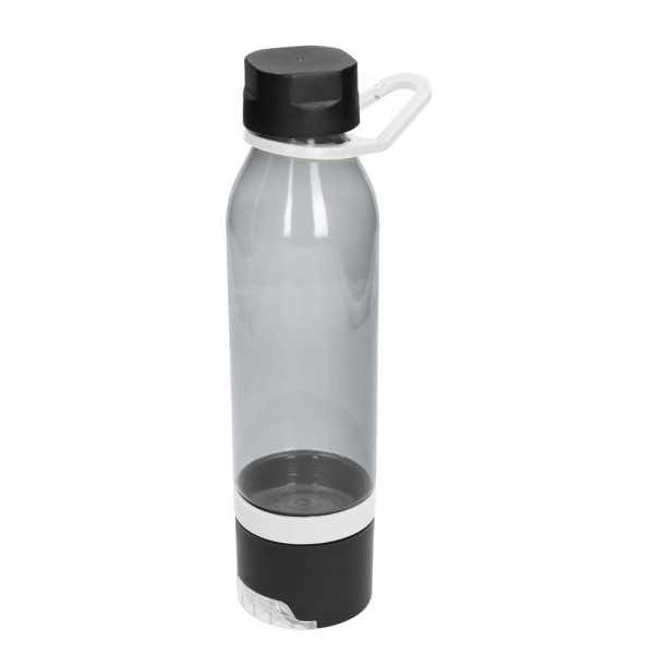 Trinkflasche, Fitnesshandtuch und Smartphonehalter in einem. Trinkflasche mit stabilem Kunststoff-Karabinerhaken am Flaschenhals zur leichten Befestigung an Rucksäcken und Sporttaschen. Im abschraubbaren Fuß der Flasche befindet sich ein Fitnesshandtuch mit cooling effect (vgl. Art. 08932). Der Boden des Fußes lässt sich herausziehen und fungiert auch ohne aufgeschraubte Flasche als sicherer Smartphonehalter. Füllmenge Trinkflasche: 0,55 Liter. Größe Tuch: 80 x 20 cm.