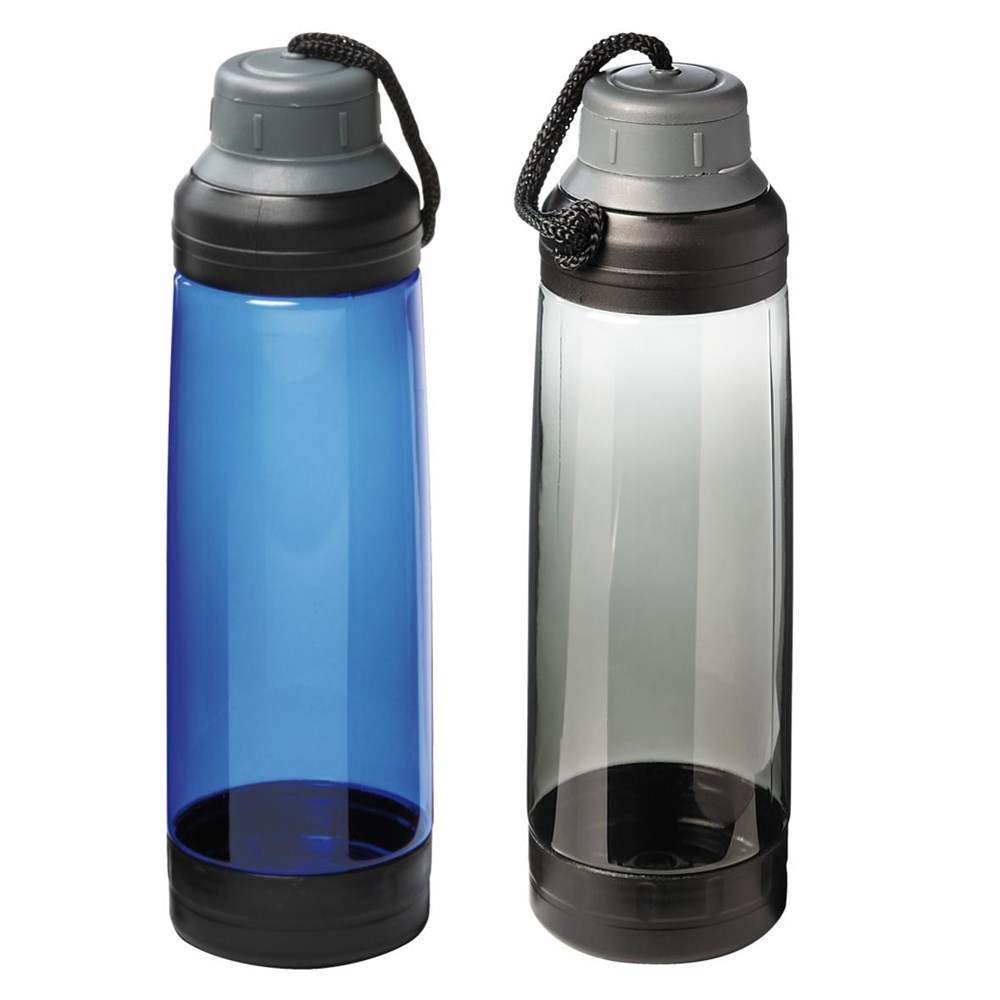 Standfuß mit Rubberfinish für sicheren Halt. Deckel zum Aufschrauben mit Silikondichtung und durch Sicherheitsband befestigt. Füllmenge: 0,5 Liter.