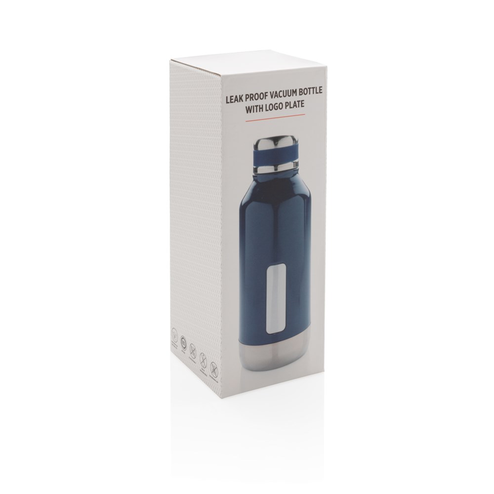 Diese auslaufsichere Vakuumflasche mit abschraubbarem Deckel hat eine spezielle Platte für Ihr Logo. Innen 304 Stainless Stell und außen 201 Stainless Steel. Hält Ihre Getränke bis zu 5h warm und bis zu 15h kalt. Inhalt: 500ml. Nur Handwäsche.