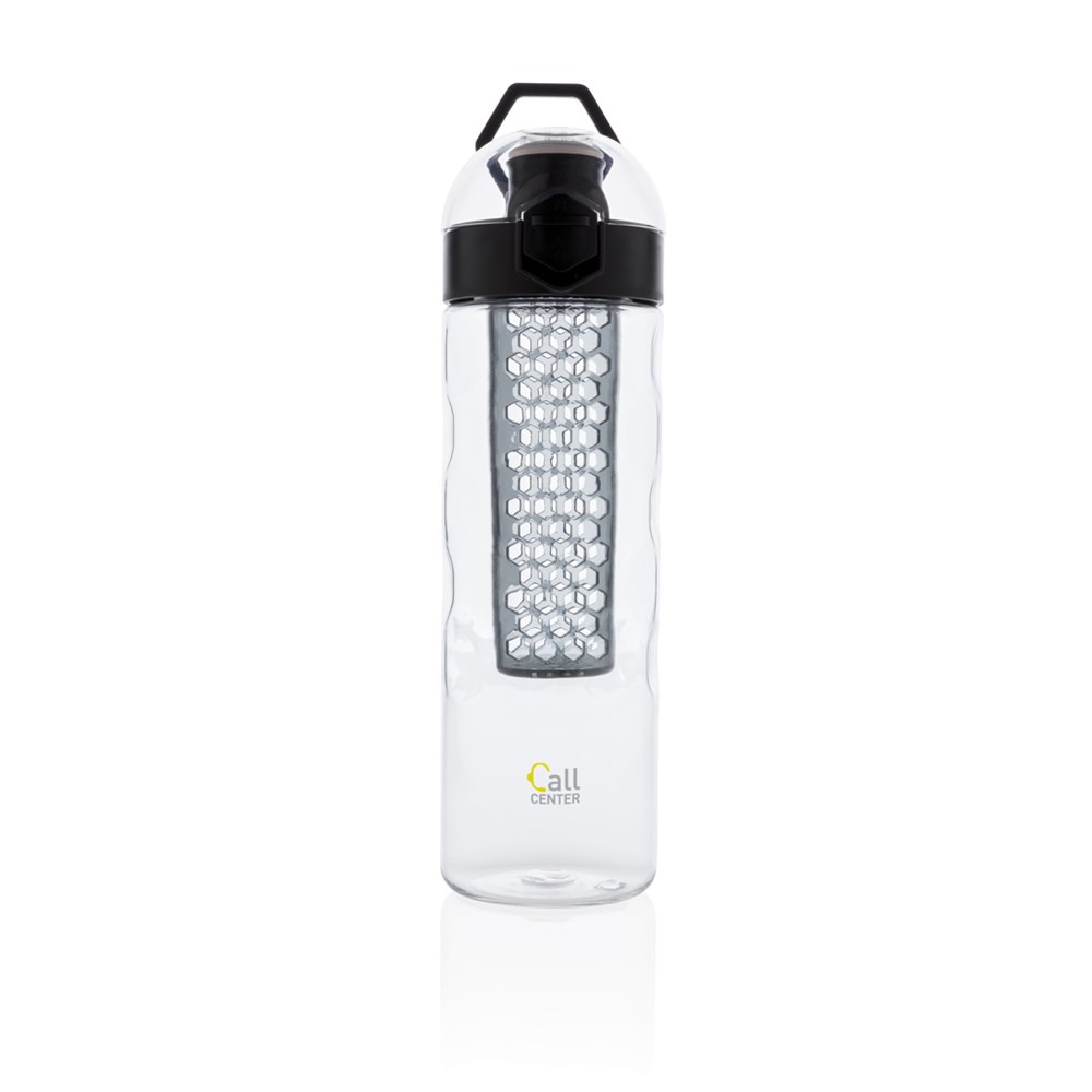 Geben Sie gesunde Früchte hinzu um Ihr Wasser zu aromatisieren. Mit ihrem Wabendesign liegt perfekt die Flasche in Ihrer Hand. Drücken Sie den Knopf und der Deckel springt auf, es gibt aber auch einen speziellen Schließmechanismus, der davor bewahrt die Flasche aus Versehen zu öffnen. Mit Trageriemen. Hergestellt aus langlebigem und innovativem Tritan. 100% BPA-frei. Inhalt: 700ml. Nur Handwäsche. Registered design®
