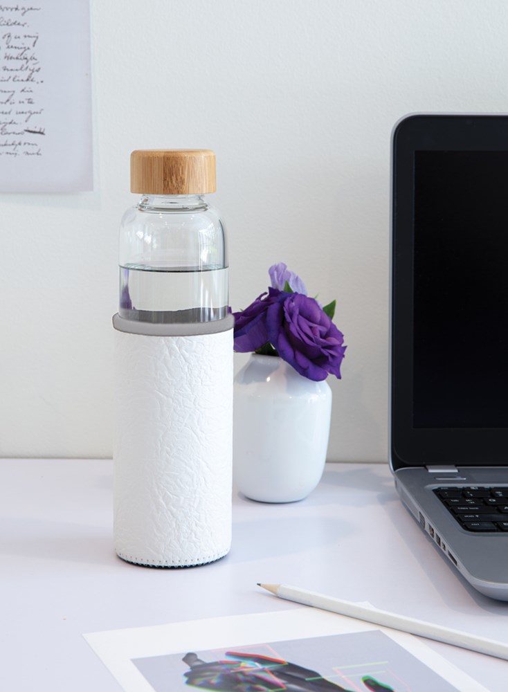 Borosilikat-Glasflasche mit struktriertem PU-Sleeve