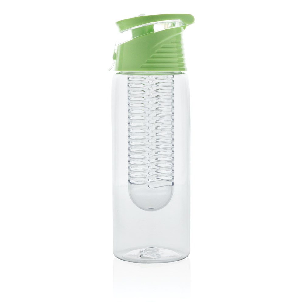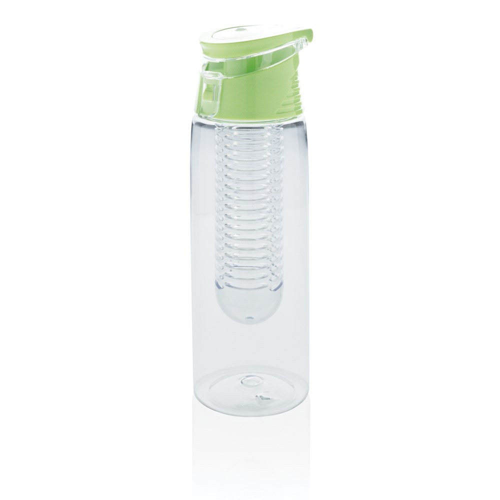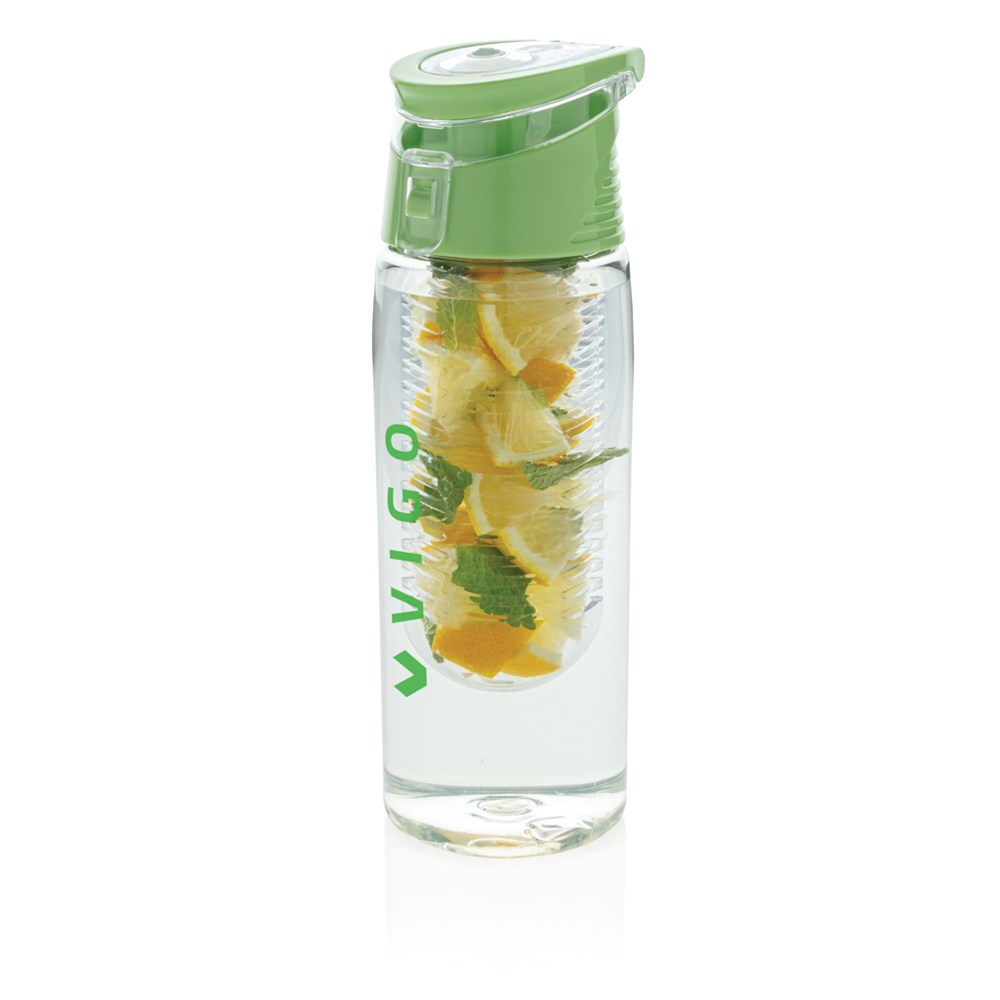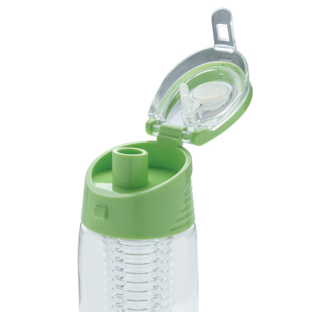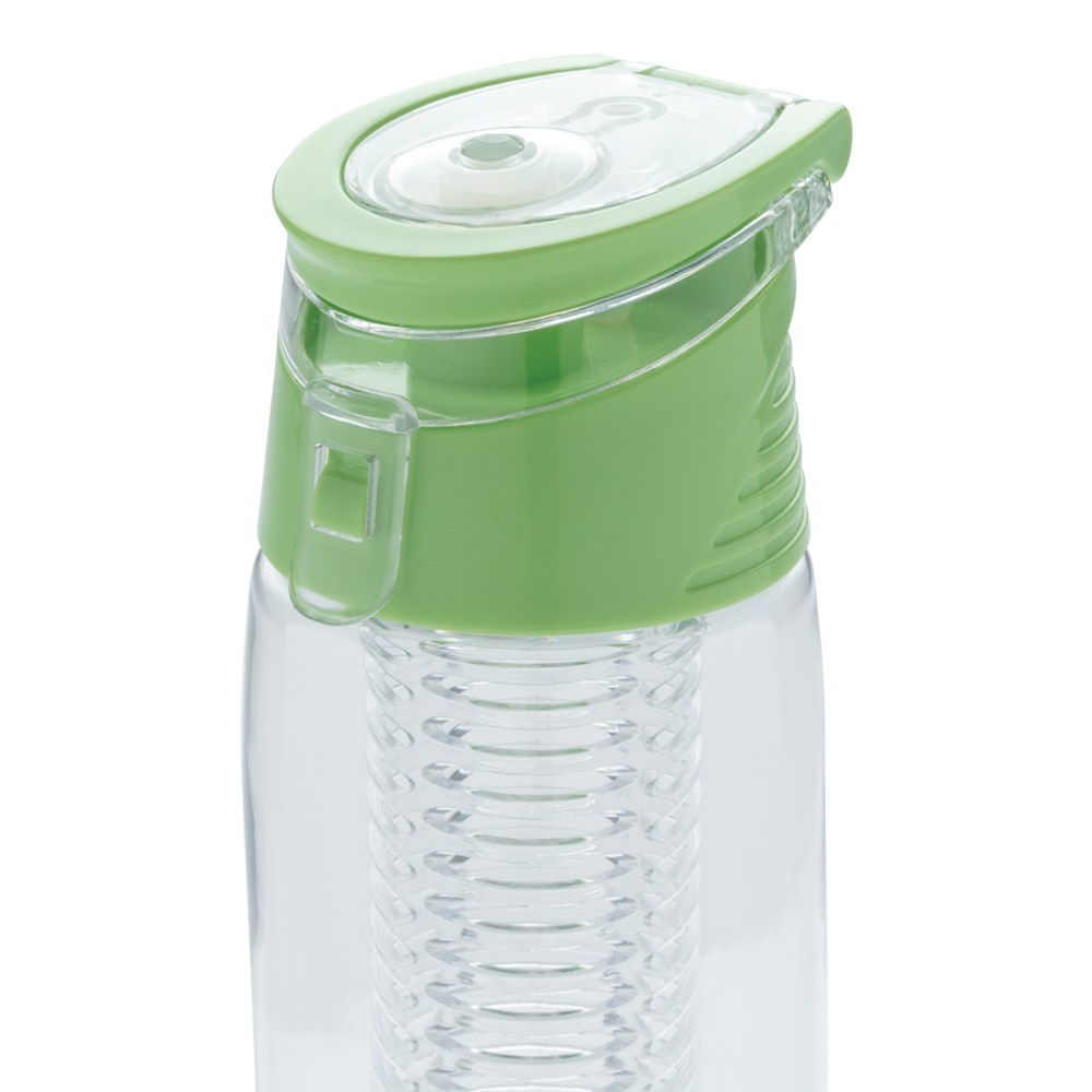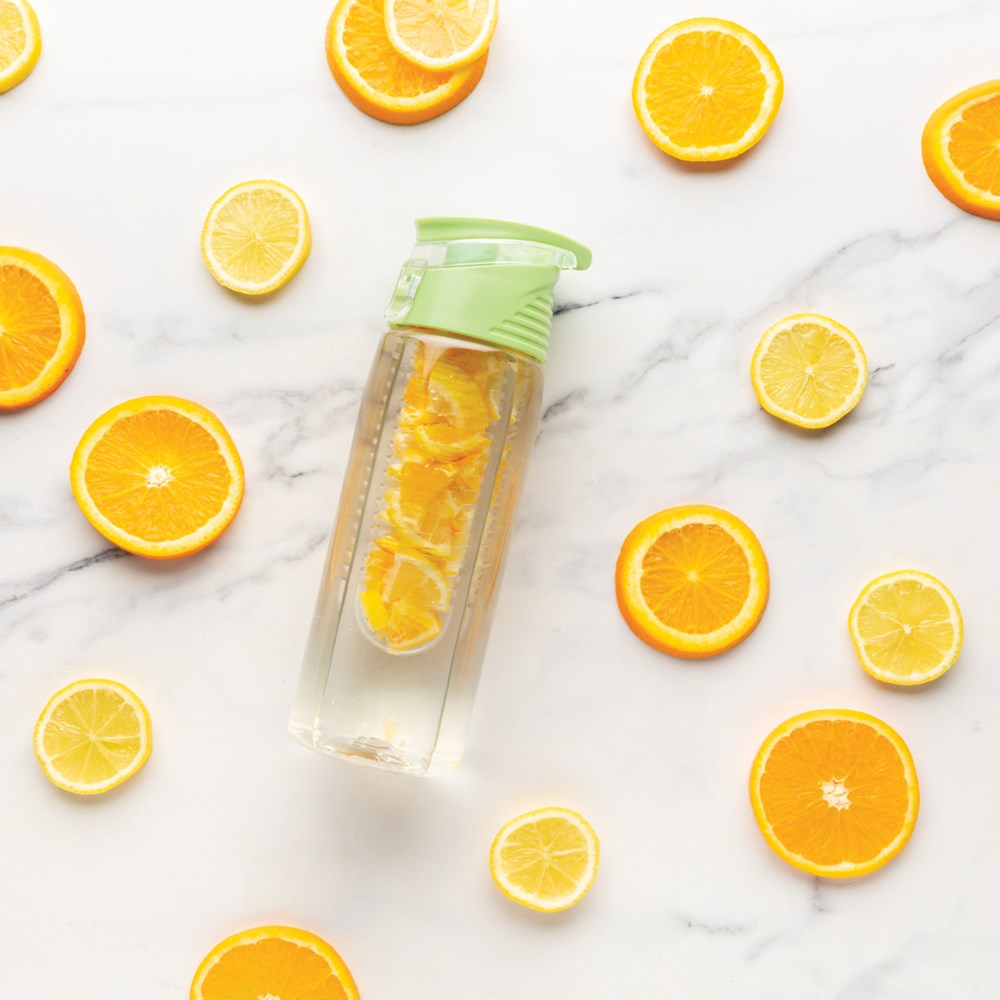 Trendige Aromaflasche, um Ihr Wasser nach Ihrem Geschmack mit Ihren Lieblingsfrüchten zu aromatisieren. Die Flasche aus Tritan ist kratzfest und widerstandsfähig. Der Deckel aus ABS hat ein Verschlusssystem mit dem Sie Ihr Getränk überall hin sicher transportieren können. 700ml Fassungsvermögen. Nur Handwäsche.