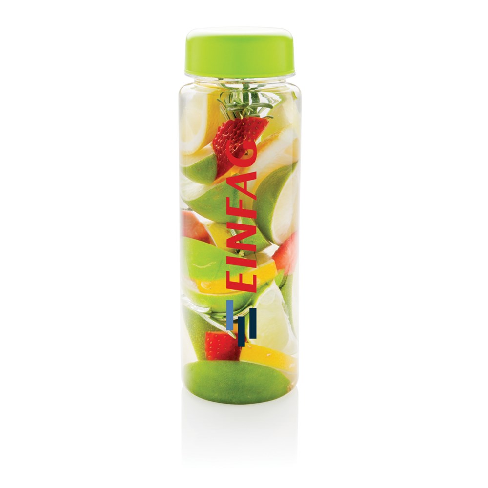 Auslaufsichere Aromaflasche aus Tritan. Extra Vitamine und Geschmack dank frischen Früchten in Ihrem Drink! In der Flasche befindet sich ein spezieller Infuser-Verschlussdeckel, der beim Trinken die Früchte im Inneren lässt. Nur Handwäsche. Inhalt: 500 ml.