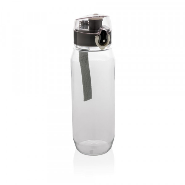 Auslaufsichere Tritanflasche mit verschließbarem Deckel und Einhand-Öffnung. Mit Trageriemen. 100% BPA-frei. Inhalt: 800ml. Nur Handwäsche.