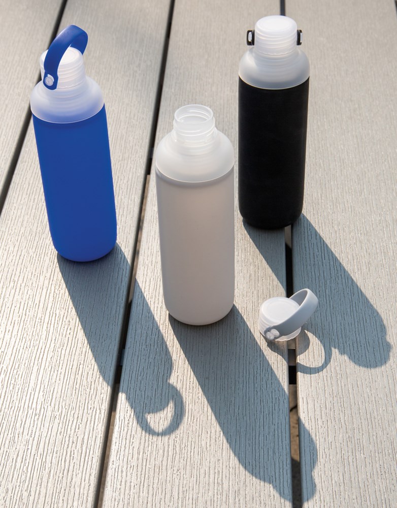 Wasserflasche aus Glas mit Silikonschutz