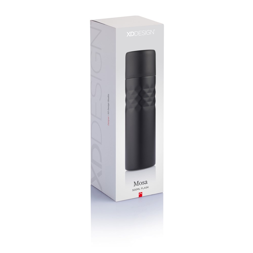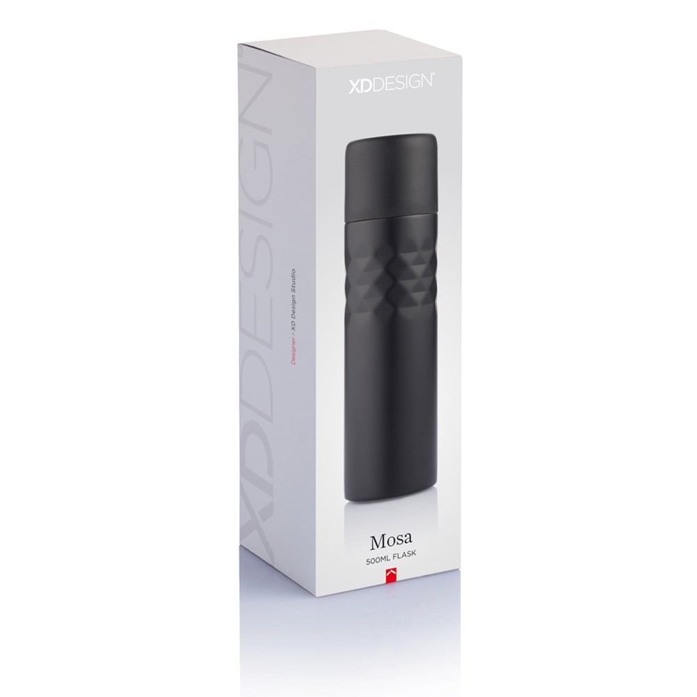 Mosa ist eine modische 500ml doppelwandige Thermosflasche aus widerstandsfähigem 201 Stainless Steel. Die Flasche ist mit einem PP Deckel verschließbar und hält so Ihre Getränke auf Temperatur. Nur Handwäsche. Geschütztes Design®