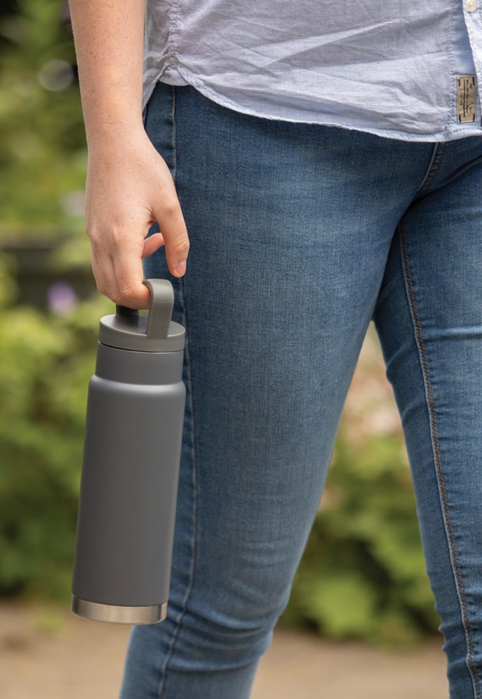 Mit dem Tragegriff auf dem Deckel lässt sich diese Stainless Steel Flasche mit Vakuum-Isolierung perfekt überall hin mitnehmen. Hält Ihre Getränke bis zu 5h warm und bis zu 15h kalt. Kapazität 650ml. BPA frei. Nur Handwäsche.