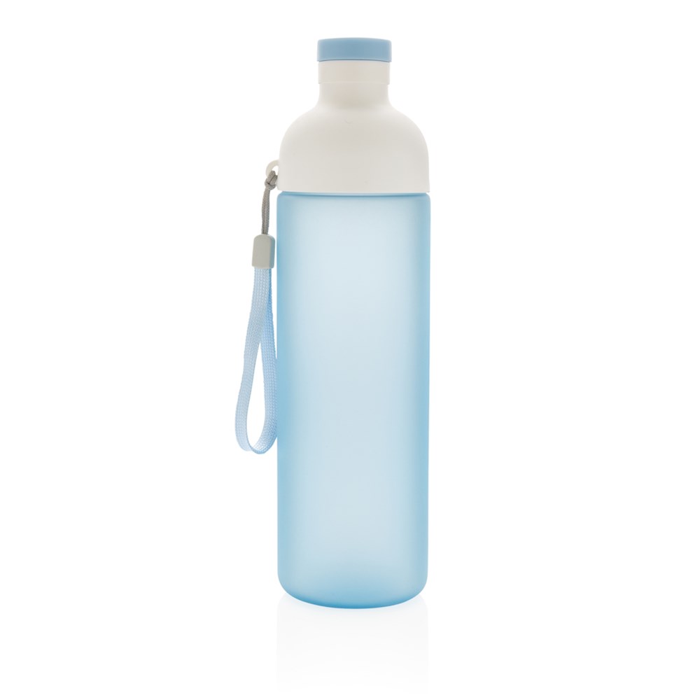 Vermeiden Sie die Verwendung von Plastikflaschen mit dieser auslaufsicheren Tritan-Wasserflasche. Mit ihrem frischen Design und dem gefrosteten Körper ist die Flasche nicht nur einfach zu tragen, sondern auch schön anzusehen. Das geteilte Körperdesign erleichtert die Reinigung und eignet sich hervorragend, wenn Sie Ihrer Flasche Eiswürfel hinzufügen möchten. Zusätzlich hat sie ein Gurt zum einfachen Tragen. Inhalt: 600ml. BPA frei. 2% des Erlöses jedes verkauften Produkts der Impact Collection werden an Water.org gespendet. Nur Handwäsche.