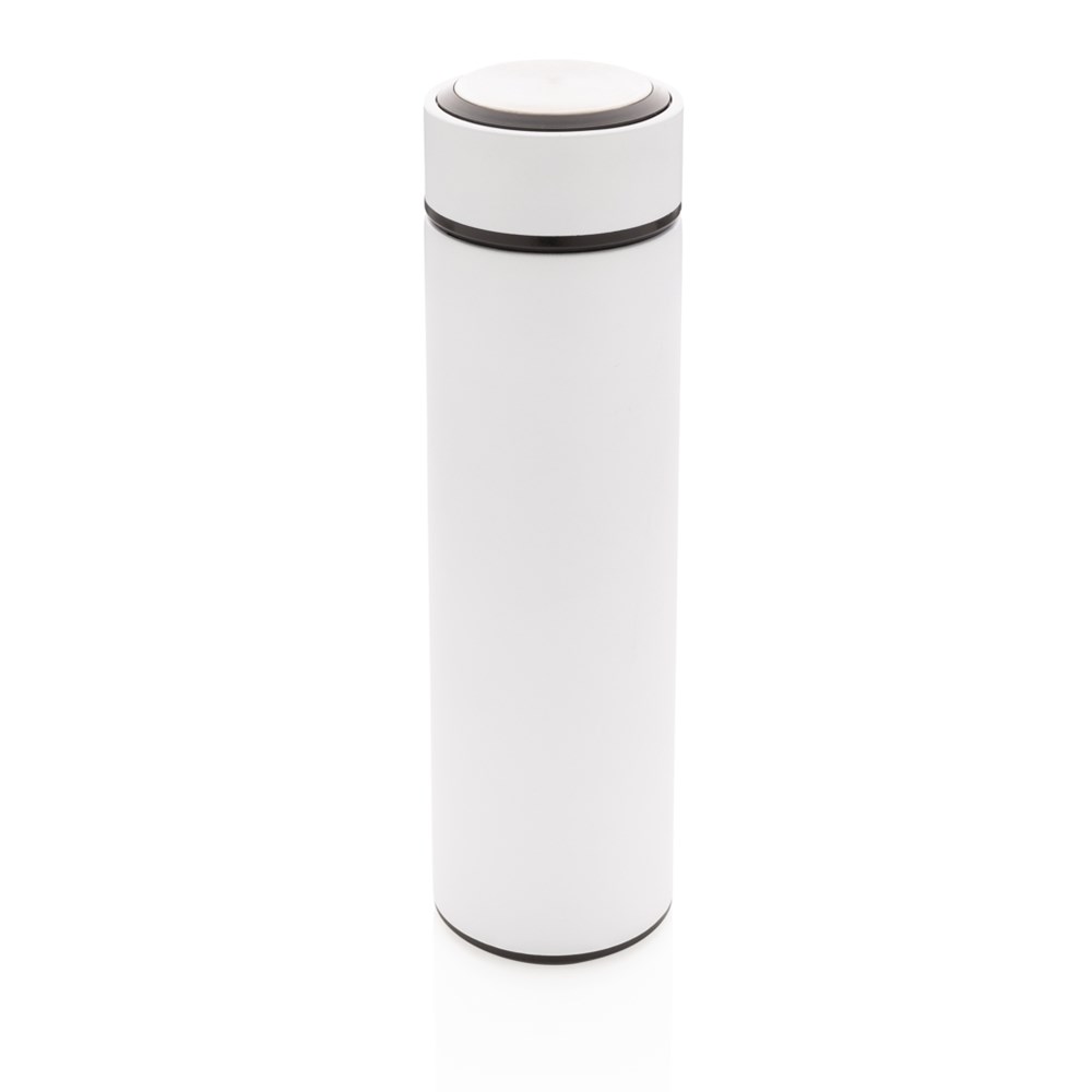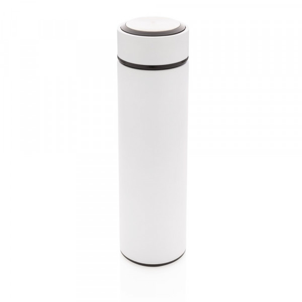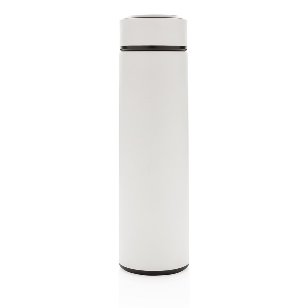 Halten Sie Ihren Kaffee oder Tee mit dieser Vakuum-Edelstahlflasche mit gebürstetem Metalldeckel schön warm. Die Flasche verfügt über einen auslaufsicheren Schraubdeckel und ermöglicht das Trinken von jeder Seite. Mit breiter Öffnung für eine einfache Reinigung. Kapazität 450ml. BPA-frei. Nur Handwäsche.