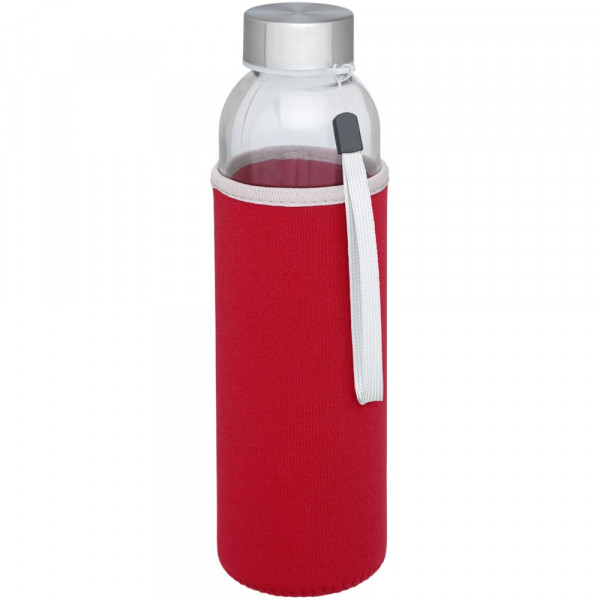 Einwandige Glasflasche mit Schraubdeckel. Der Deckel verfügt über einen Gurt zum einfachen Tragen sowie eine Neoprenhülle. Empfohlen für kalte Getränke. Nicht einfrieren, nicht Mikrowellengeeignet. Das Fassungsvermögen beträgt 500 ml. Verpackt in einer Geschenkschachtel.