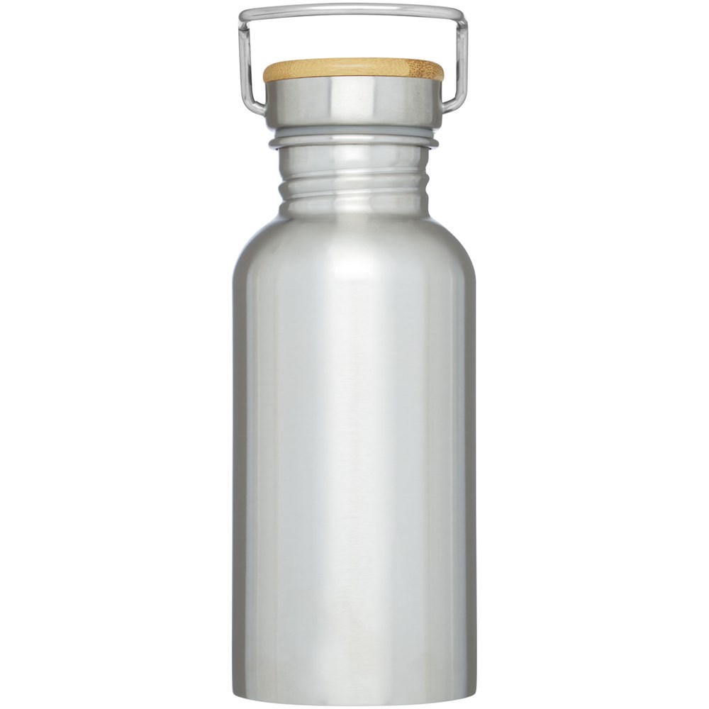 Einwandige Edelstahlflasche mit Schraubdeckel. Der Deckel verfügt über ein Bambusoberteil sowie einen Griff zum einfachen Tragen. Das Fassungsvermögen beträgt 550 ml. Verpackt in einer Avenue-Geschenkschachtel.