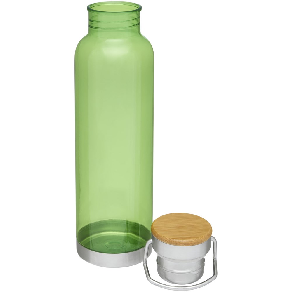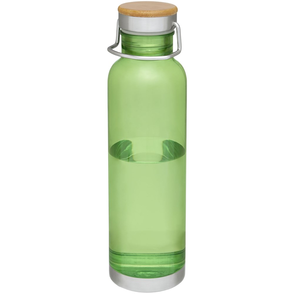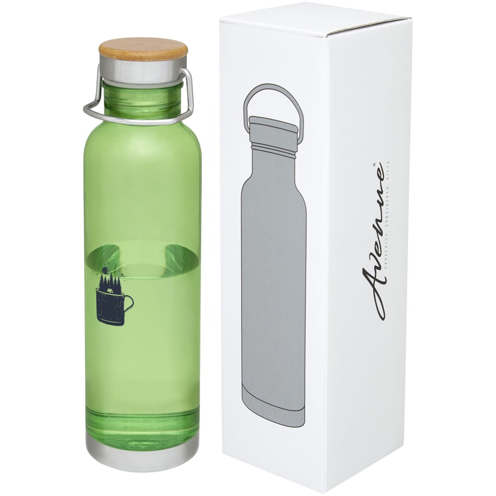 Einwandige Sportflasche aus strapazierfähigem Tritan™-Material. Bruch-, schmutz- und geruchbeständig. Ausgestattet mit einem Schraubdeckel mit Bambusoberteil sowie einem Griff zum einfachen Tragen. BPA-frei. Das Fassungsvermögen beträgt 800 ml. Verpackt in einer Avenue-Geschenkschachtel.
