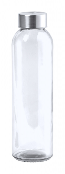 Transparente Sportflasche aus Glas, mit Verschluß aus Metall. Füllmenge: 500 ml. Einzeln in Geschenkbox.