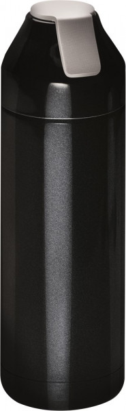 Edelstahl-Thermosflasche mit einem Metall-Sieb, der als Filter für Tee oder zum Aromatisieren bspw. mit einer Zitronenscheibe dient.