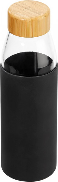 Hitzebeständige Glas-Trinkflasche 0,5 l mit Bambusdeckel, Silikonmanschette und Geschenkbox