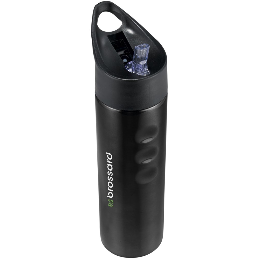 Einwandiges Gehäuse. Schraubverschluss, Auslaufschutz mit hochziehbarer Trinköffnung. Seitliche Griffmulden für einfache Handhabung. Volumen 750 ml.