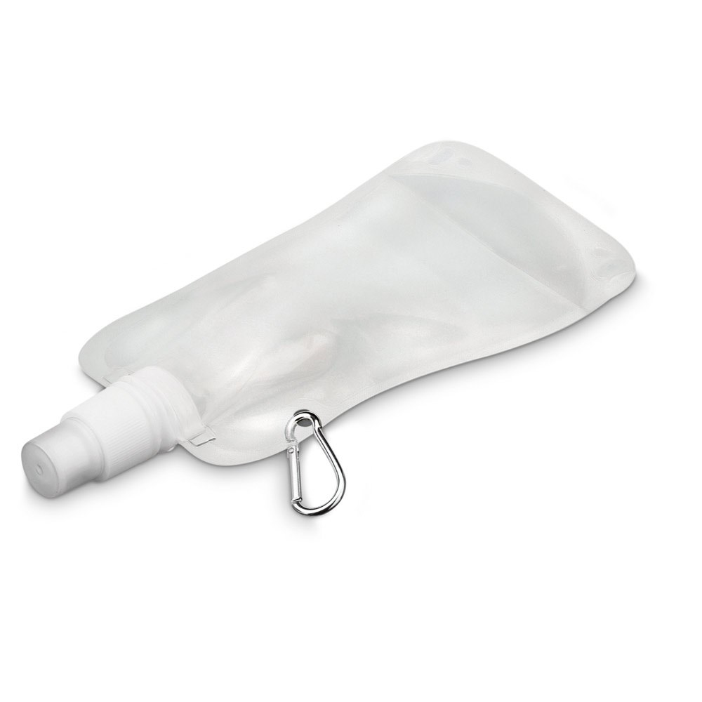 Faltbare Sport-Trinkflasche aus Kunststoff mit Karabine (460 ml). 110 x 218 x 640 mm