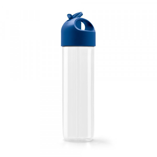Sportflasche aus transparentem PS und PE (500 ml) mit einem Schraubverschluss und integriertem Strohhalm. ø70 x 230 mm