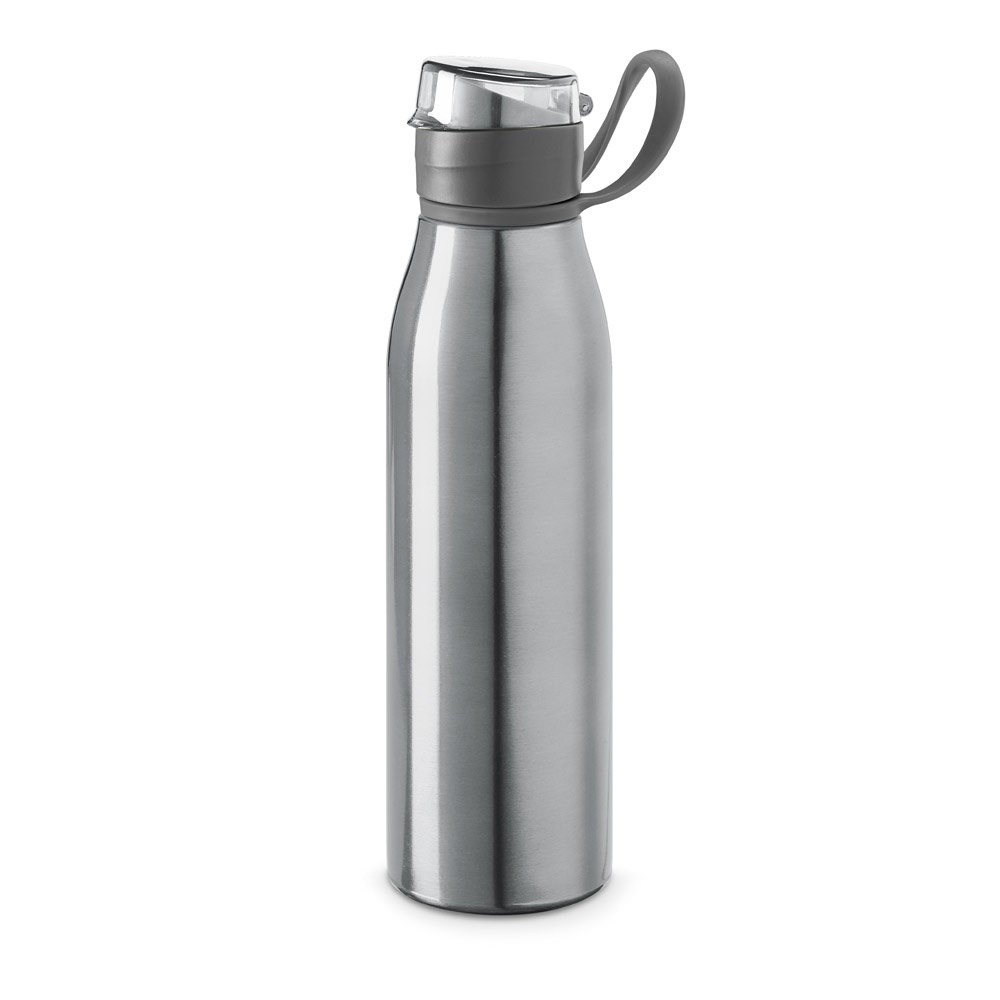 Trinkflasche aus Aluminium und AS (650 ml). Der Griff am Deckel ermöglicht den bequemen und praktischen Transport. ø66 x 250 mm