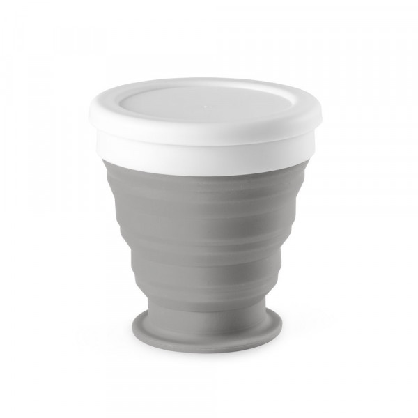Faltbarer Reisebecher aus Silikon und Deckel aus PP (250 ml). ø88 x 85.5 mm