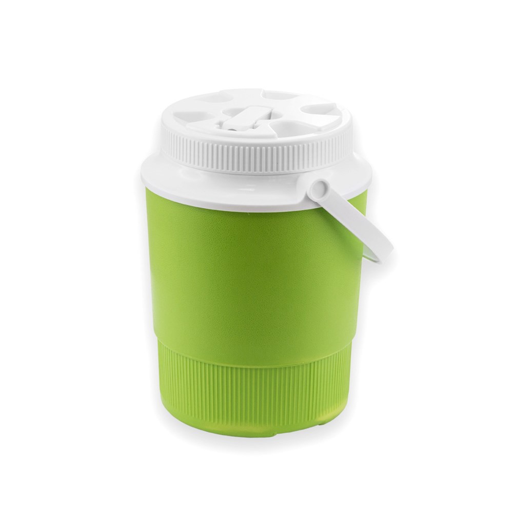 Thermo-Eimer mit 2 Liter Fassungsvermögen und originellem zweifarbigem Design. Hergestellt aus robustem Material in lebendigen Farben. Mit Schraubdeckel mit Dosierungshilfe und resistentem Griff in Weiß.