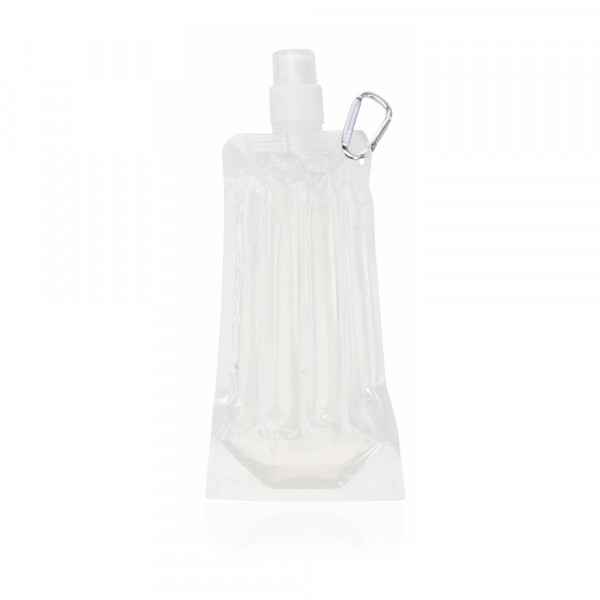 Trinkflasche mit 400 ml Fassungsvermögen aus transparentem PET mit flüssigem Kühlmittel in lebendigen Farben. Mit Sicherheitsverschluss und Metallkarabiner.