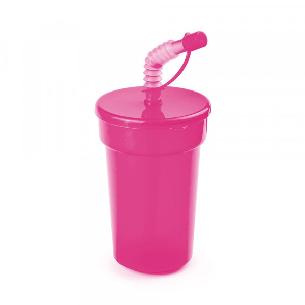 Tasse mit 400 ml Fassungsvermögen aus Polypropylen (PP) in einer Vielzahl von kräftigen, transparenten Farben. Mit flexiblem Trinkhalm in passender Farbe.