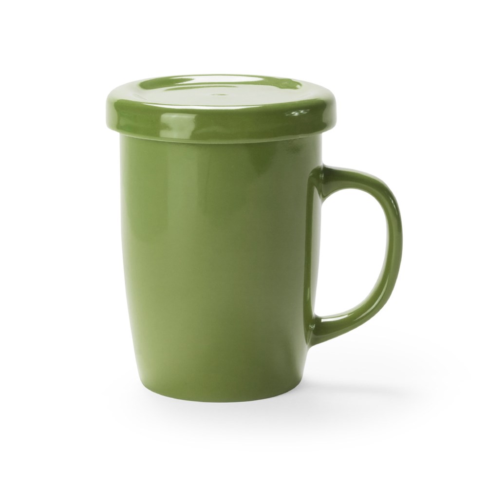 Keramiktasse mit 380 ml Fassungsvermögen in verschiedenen fröhlichen Farben. Mit speziellem Deckel, der als Halterung für Teebeutel dient. Präsentiert in einer individuellen Box.