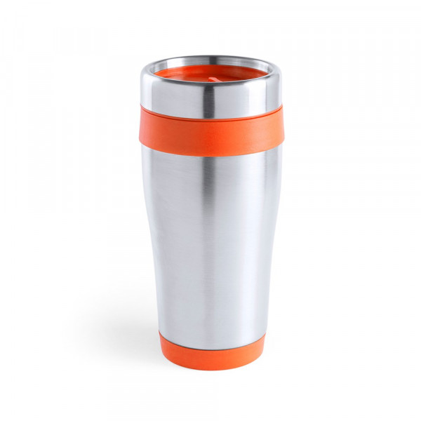 Becher aus Edelstahl mit 450 ml Fassungsvermögen und glänzendem Finish mit farblich passenden Kontrastdetails in lebendigen Farben. Deckel mit Sicherheitsspender. Präsentiert in einer attraktiven Designbox.