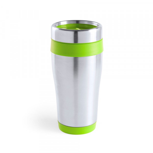 Becher aus Edelstahl mit 450 ml Fassungsvermögen und glänzendem Finish mit farblich passenden Kontrastdetails in lebendigen Farben. Deckel mit Sicherheitsspender. Präsentiert in einer attraktiven Designbox.
