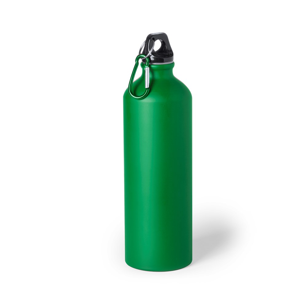 Trinkflasche mit 800 ml Fassungsvermögen aus Aluminium in vielen lebendigen Farben. Mit Sicherheitsverschluss und Metallkarabiner. Präsentiert in einer attraktiven Designbox.