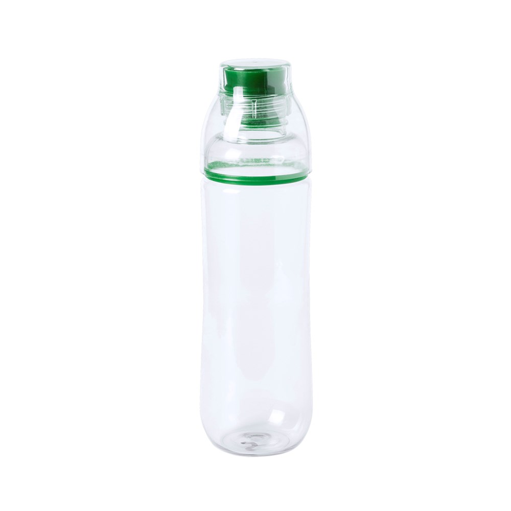 Trinkflasche mit 700 ml Fassungsvermögen und transparentem Körper mit Deckel/Becher in kräftigen Farben. Mit Sicherheitsspender. Präsentiert in einer individuellen Box.