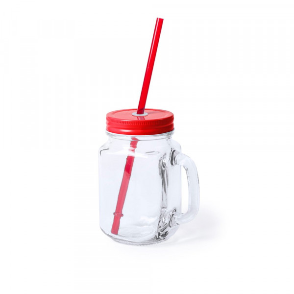 Vielseitig verwendbares Glas mit 500 ml Fassungsvermögen und Deckel mit Strohhalm in lebendigen Farben. Mit Schraubdeckel aus Metall. Präsentiert in einer attraktiven Designbox.