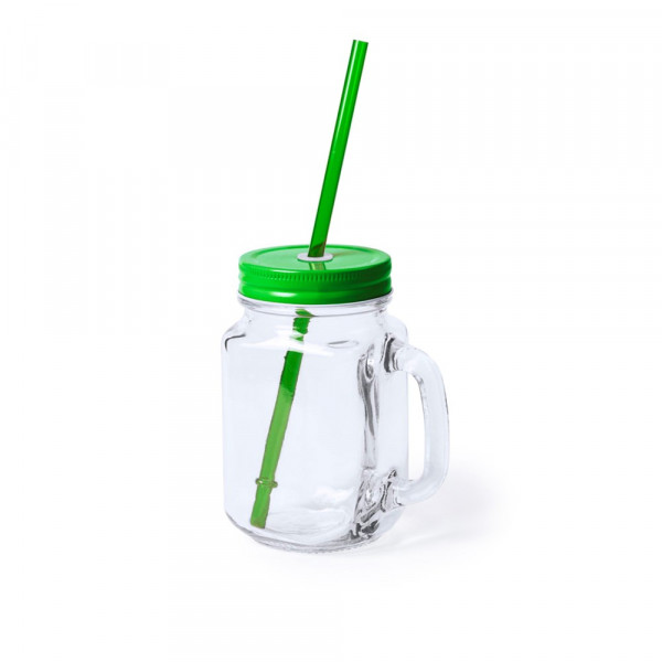 Vielseitig verwendbares Glas mit 500 ml Fassungsvermögen und Deckel mit Strohhalm in lebendigen Farben. Mit Schraubdeckel aus Metall. Präsentiert in einer attraktiven Designbox.